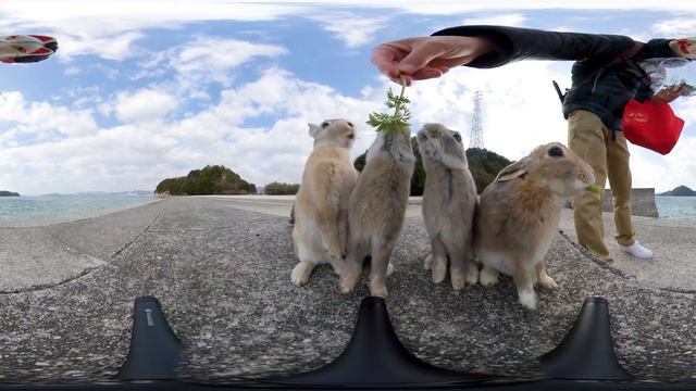 Rabbits are gathering on the windy shore. Perhaps the wind was too strong, and they started to move away one after another. ★360 video Viewing method★ ▼Cell phone・Tablet Open the video from the YouTube app and move your device in the direction you want to see it. You can move the viewpoint with swipe. ▼Personal computer You can move the viewpoint by dragging the screen. You can also use the controller at the top left of the YouTube screen, or use the “W” “A” “S” “D” keys to move the viewpoint. In full screen display, you can zoom the image by operating the mouse wheel. ▼Shooting place Okunoshima(Rabbit Island), Tadanoumi Town, Takehara City, Hiroshima Prefecture, Japan ▼Equipment used 360 camera:Insta360 ONE X(With Venture Case) tripod:insta360 All-Purpose Tripod ★Play List★ ▼Baby Bunny 360° Videos https://www.youtube.com/watch?v=NAT0bBAnDfg&list=PL4HyjtVA1JBY_LKaSUt35VTpJ_R3MBuN8 ▼nyoshi 360 rabbit ch Subscribe https://www.youtube.com/channel/UC99pkOsXFCSCwuB5Qt9gkLA/?sub_confirmation=1 ▼nyoshi 360 videos ch https://www.youtube.com/channel/UClljuLmN77m7dPmzLfQsnAw ▼nyoshi X(Twitter) https://twitter.com/nyoshich ▼nyoshi X(Twitter) Rabbit account https://twitter.com/nyoshi_rabbitch ▼nyoshi Instagram https://www.instagram.com/nyoshi360ch #nyoshi #360video #VR #virtualreality #video360 #vrvideo #360 #VR360 #360VR #360度動画 #うさぎ #ウサギ #うさぎ島 #大久野島