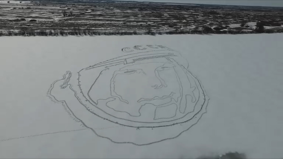 Художники-энтузиасты 3 апреля 2016 года при помощи навигатора, компьютера и дрона "нарисовали" портрет первого космонавта Юрия Гагарина на одном из озер в Рязанской области.
