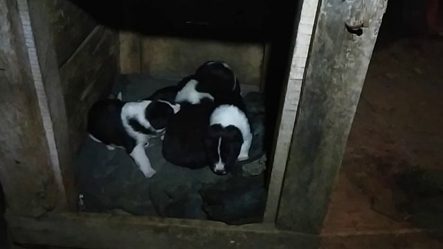 Щенки русско-европейской лайки. Малявки показывают свой характер.