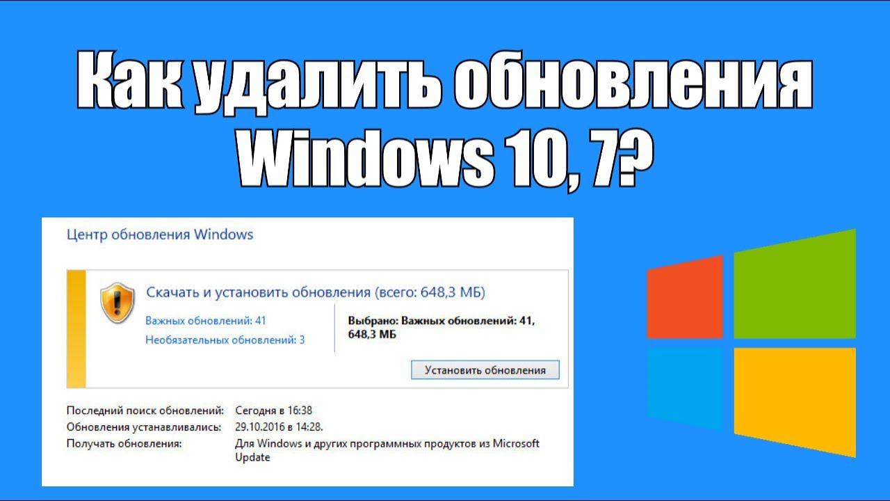 Как удалить обновления windows 10,7?