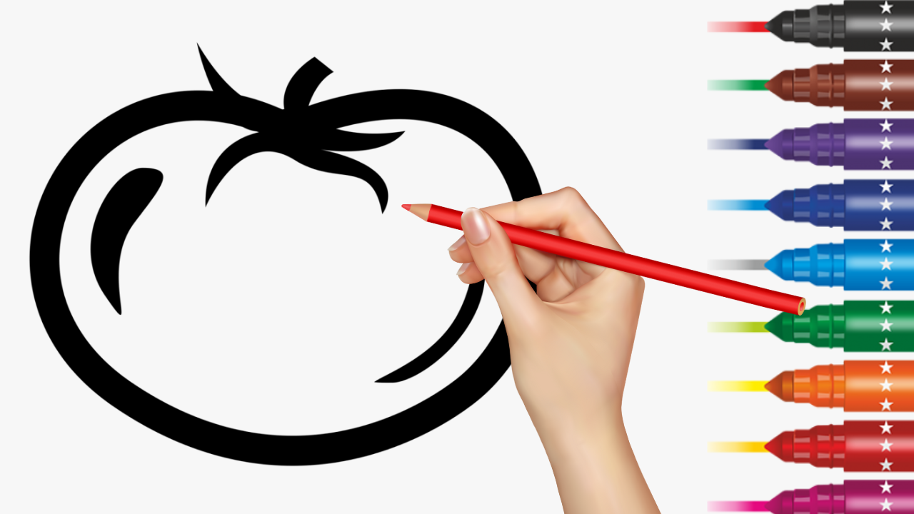 Рисуем помидорку фломастерами. Идея для рисования с маленьким ребёнком