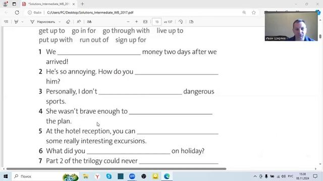 Английский язык Фразовые глаголы Упражнение