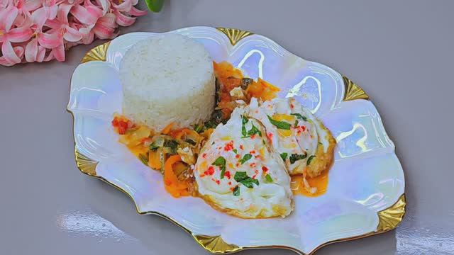 ❤️ингредиенты: ❤️рис 300гр ❤️вода 1,5 стакана ❤️масло 50гр ❤️соль 0,5 ч.л. ❤️лук 1шт ❤️бол.перец красный и зеленый ❤️помидор 1шт ❤️соль и черный перец ❤️петрушка ❤️под.масло ❤️яйцо 6шт