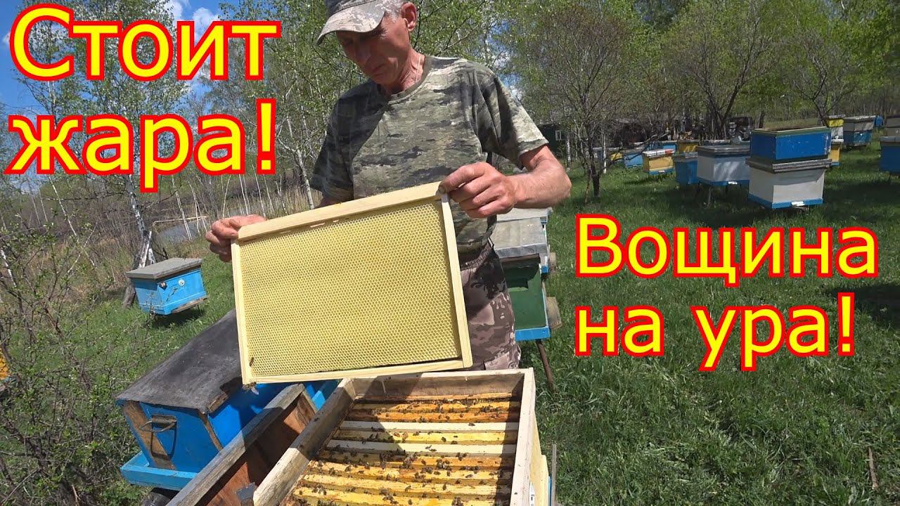 Погода стоит! ВОЩИНУ ТЯНУТ! Расширение гнезда вощиной