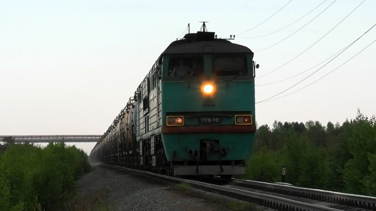 "Зеленый ямалец" 2ТЭ116-342 с грузовым поездом