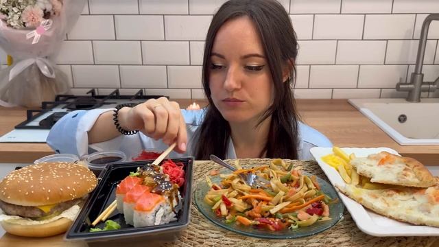 МУКБАНГ РОЛЛЫ ФИЛАДЕЛЬФИЯ ВОК ЛАПША БУРГЕР ПИЦЦА КАРТ