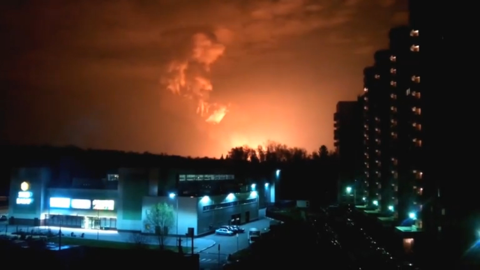 В Жуковском районе Калужской области 29 апреля 2016 года произошел мощный взрыв на газопроводе, а свет от пожара озарил небо на несколько километров вокруг.