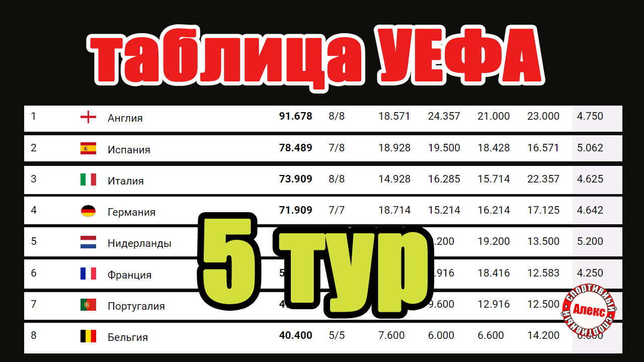 Этой снежной ночью в Лиге Чемпионов, Лиге Европы и Лиге Конференций завершился 5-й тур. Франция вернула себе 5-ое место. Какие ещё изменения произошли в рейтинге УЕФА? -----Поблагодари автора за полезный выпуск-------- * Donationalerts - https://www.donationalerts.com/r/novostisporta * ЮMoney - https://yoomoney.ru/to/410016816116658, * Карта (Почта банк): 2200 7706 2669 7108 Заказать рекламу (265 тыс. подписчиков) : https://prolog.yt/playgrounds/view/8361