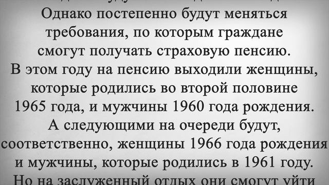 Новые Требования для Пенсионеров с 1 Января 2023 г. Российских граждан 1961 года рождения и моложе предупредили насчет пенсии. Людям напомнили о том, какие требования по назначению выплаты относительно скоро для них заработают в полном объеме. А в целом такие изменения должны завершиться уже к 2028 году. Переходный период по пенсионной реформе, которая была принята еще в 2019 году, скоро подойдет к своему экватору. В целом процессы в рамках реформы должны завершиться к 2028 году, но на ближайшие несколько лет запланированы несколько важных нововведений для россиян. Так, например, в следующем году пенсии по старости назначаться не будут. Точно такими же «пропущенными» годами будут 2025 год и 2027 год. Однако постепенно будут меняться требования, по которым граждане смогут получать страховую пенсию. В этом году на пенсию выходили женщины, которые родились во второй половине 1965 года, и мужчины 1960 года рождения. А следующими на очереди будут, соответственно, женщины 1966 года рождения и мужчины, которые родились в 1961 году. Но на заслуженный отдых они смогут уйти лишь в 2024 году, когда им исполнится 58 лет и 63 года соответственно. При этом требования по стажу и пенсионным баллам для них будут уже совсем другими, нежели сейчас. В этом году для страховой пенсии по старости требовалось подтвердить 13 лет стажа и 23,4 пенсионных коэффициента. А в 2024 году необходимый минимальный объем стажа вырастет до 15 лет, то есть его повысят еще на два года. Что касается баллов, минимум достигнет уже 30, именно столько нужно будет накопить, чтобы страховая пенсия была назначена. В противном случае гражданину предложат либо докупить стаж, либо подождать до социальной пенсии, которая назначается на пять лет позже. Ставьте лайк если считаете, что требования для назначения пенсии необходимо снизить, а размер пенсии повысить и напишите какие, по-вашему, должны быть требования для назначения пенсии и её размер?