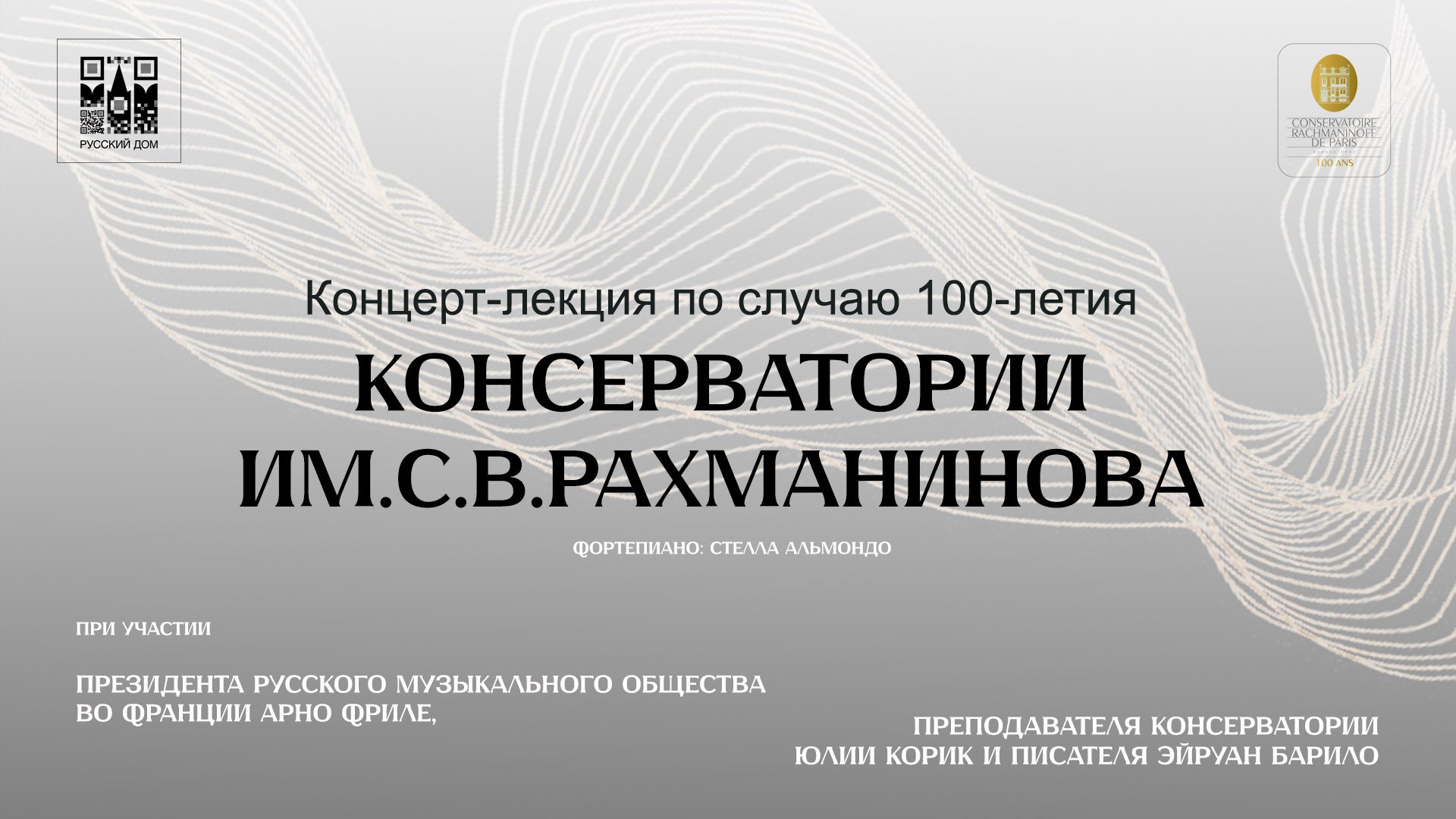 #русскийдом #консерваториярахманинова 23 ноября 2023 г. в Русском доме в Париже состоялся историко-музыкальный вечер, посвященный 100-летию парижской консерватории имени С.В.Рахманинова. В торжественном вечере приняли участие дипломаты, представители научной и культурной элиты, музыкальные историки и эксперты, представители общественных организаций, потомки выдающихся композиторов.
