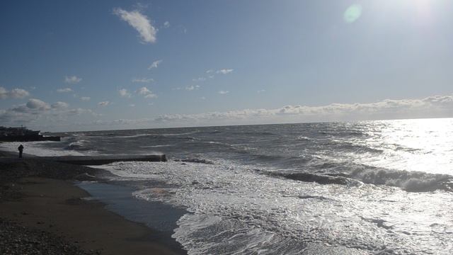 Волны прибоя накатывают на галечный пляж Черного моря