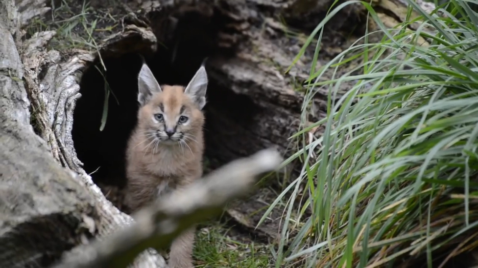 Видео зоопарка Орегона. 6-недельные каракалы вышли погулять под присмотром своей мамы.