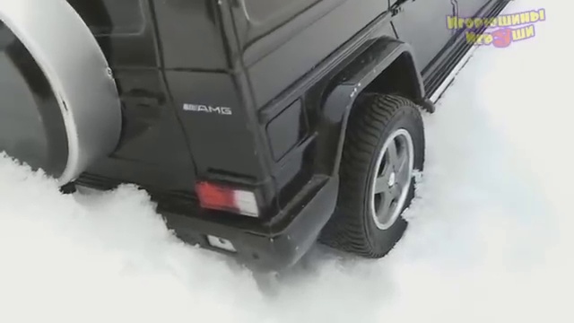 На видео игрушечный автомобиль пытается выбраться из снега, на помощь приходит маленький мальчик.