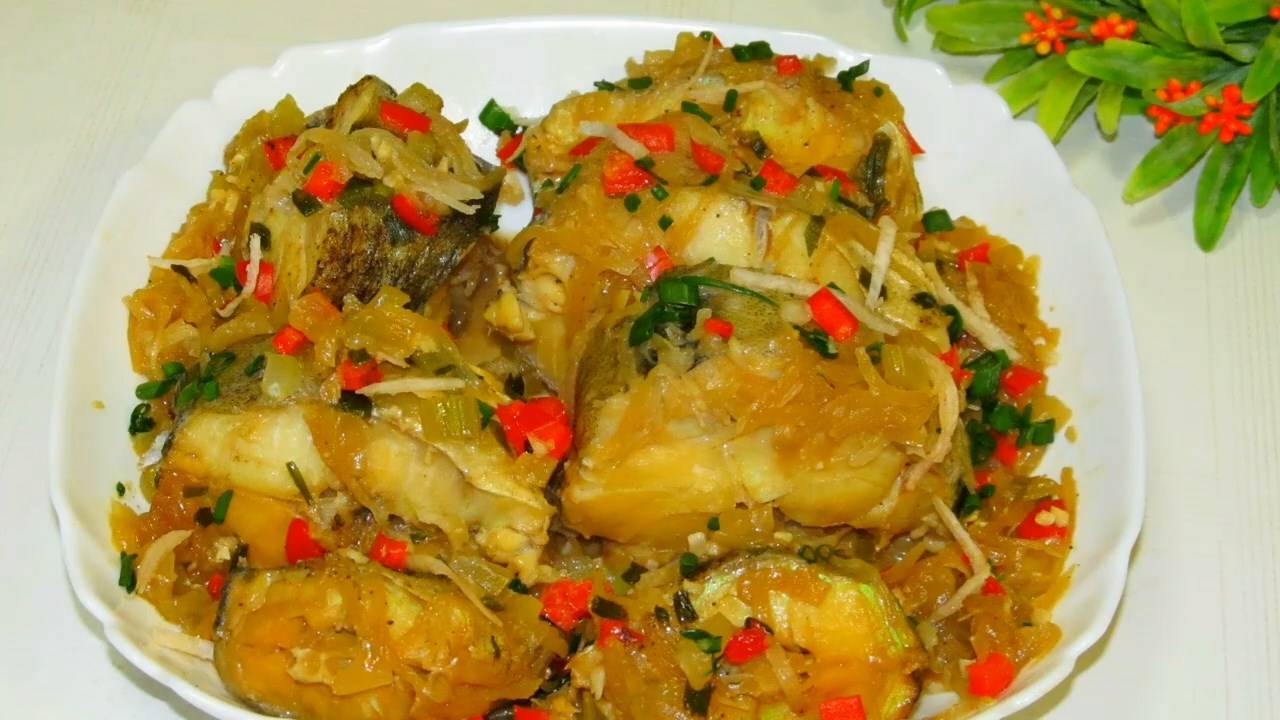 Блюдо корейской кухни, рыба с модным овощем. Необычно, но никто не сказал, что это невкусно.