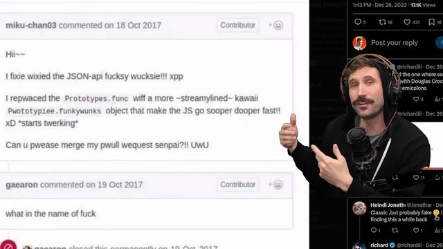 Lets deep dive into the world of open source and github and ask the age old question, are developers ok? ## Check out todays sponsor! https://gt.dev/prime Do you want to become a backend dev? Did you know I am about to make courses exclusively for boot dev? check out https://boot.dev/prime sign up, become a back end dev, and help me out :) ### Twitch Everything is built live on twitch Twitch : https://bit.ly/3xhFO3E Discord: discord.gg/ThePrimeagen Spotify DevHour: https://open.spotify.com/show/4MLaDrQcQ5mi3rsnvWkwPt ### Editor All my videos are edited by Flip. Give him a follow! https://twitter.com/flipmediaprod Join this channel to get access to perks: https://www.youtube.com/channel/UC8ENHE5xdFSwx71u3fDH5Xw/join ### Links Linode: https://linode.com/prime https://discord.gg/ThePrimeagen Twitch: https://twitch.tv/ThePrimeagen Insta: https://instagram.com/ThePrimeagen Twitter: https://twitter.com/ThePrimeagen VimRC & i3: https://github.com/ThePrimeagen/.dotfiles Keyboard 15% off https://bit.ly/Prime360 USE CODE PRIME360 #coding #neovim #typescript #programming #vim #softwareengineering #codinglife #webdesign #webdevelopment #webdev #javascript #rustlang #rust #twitch #twitchstreamer #programmerhumor #codinghumor #software #softwareengineer #softwaredeveloper #softwaredevelopment