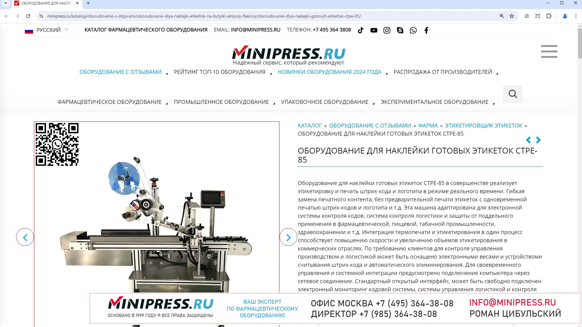 Minipress.ru Оборудование для наклейки готовых этикеток CTPE-85