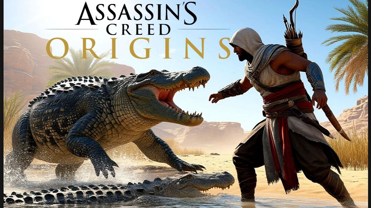 AC Origins. #7. Агрессивные бегемоты и кровожадные крокодилы в Египте. Игрофильм на русском.