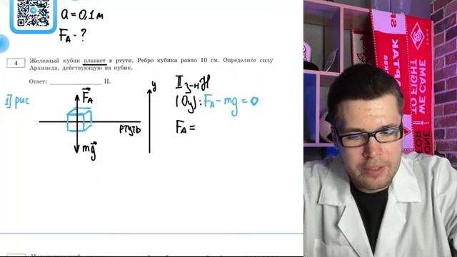 Железный кубик плавает в ртути Ребро кубика равно 10 см Определите силу Архимеда - 20664