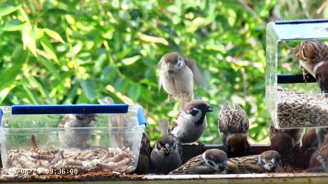 Воробьи в кормушке -