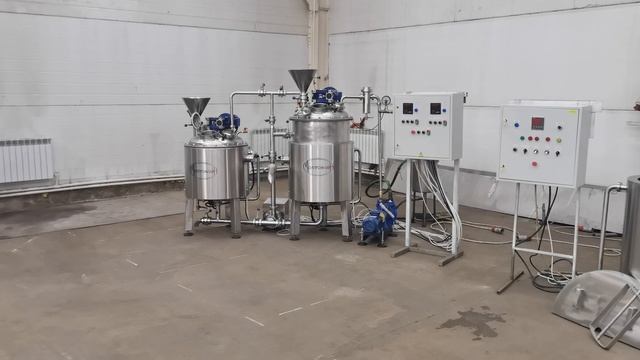 Производство натуральных косметических масел, гелей, шампуней из растительного сырья путем выпаривания Смеситель СМУ-Э-100 Ёмкость трехслойная с герметичной торосферической крышкой. На крышке установлена воронка для внесения компонентов во время тех.процесса. Люк ДУ150. Материал первого и второго слоя пищевая нержавеющая сталь AISI 316. Материал облицовочного слоя AISI 304. Дно конус. Рабочий объем емкости 100л, геометрический объем - 125л. Мешалка рамного типа с фторопластовыми скребками. Привод мешалки мотор-редуктор с двигателем, мощностью 0,75 кВт. Скорость вращения вала мешалки 28 - 30 об/м. Рубашка объемная(под глицерин) с расширительным бачком и установленной группой ТЭН, суммарной мощностью 15кВт. Охлаждение по змеевику. Вход/выход воды охлаждения регулируется пневматическим клапаном ¾ дюйма. Возможность раздельной работы ТЭН (5+5+5 кВт) Пульт с функцией автоматического и принудительного включения и выключения тэн, функцией автоматического поддержания заданной температуры продукта и функцией управления мешалкой. Терморегулятор двухканальный ОВЕН. Датчики температуры в продукт и рубашку. Запорная арматура с затвором дисковым, диаметром 50мм на выгружном патрубке по центру дна ёмкости. Уплотнение на валу мешалки для предотвращения попадания паров на мотор-редуктор. Моющая головка инерционная — 1 шт. Регулируемые опоры. Насос для перекачки ЦНШ-3/1,5кВт/1450 об/мин. 1 Вакуумно-выпарной аппарат ВВА- Э-150 Ёмкость вакуумная трехслойная из пищевой нержавеющей стали AISI 316, со объемной рубашкой нагрева и охлаждения на давление воды до 0,2 МПа. Разряжение в аппарате до -0,099 Мпа. Дно конус. Подача холодной воды в рубашку регулируется посредством клапана электромагнитного 1 дюйм. В нижней части рубашки установлены электрические ТЭН суммарной мощностью 20 кВт. Четыре патронных ТЭН по 5 кВт каждый с возможность раздельного включения. Дно конус. Рабочий объем емкости 150л, геометрический объем емкости 230л. Патрубок выхода продукта снизу Ду50 мм с затвором дисковым. Перемешивающее устройство рамного типа со скребками. Привод мешалки мотор-редуктор, мощностью 1,5 кВт, 28-30 об/м. Крышка торо-сфера. На крышке: - люк 150 мм, - клапан предохранительный, - воронка для снесения компонентов Датчик температуры в продукт и рубашку нагрева ТСП. Пульт управления, включая пускатель мешалки, управление нагревом и управление вакуумным насосом. Инерционная моющая головка –1 шт. Регулируемые опоры. Вакуумная система включает в себя: - вакуумный насос ВВН, - моновакууметр электроконтактный, - обратный клапан Трубопровод Гидролат – от гидро + le lait (фр. молоко) – вторичный дистиллят, душистая (флорентинная) вода, образующаяся при паровой дистилляции растительного (как правило, эфиромасличного) сырья. Любой гидролат состоит из