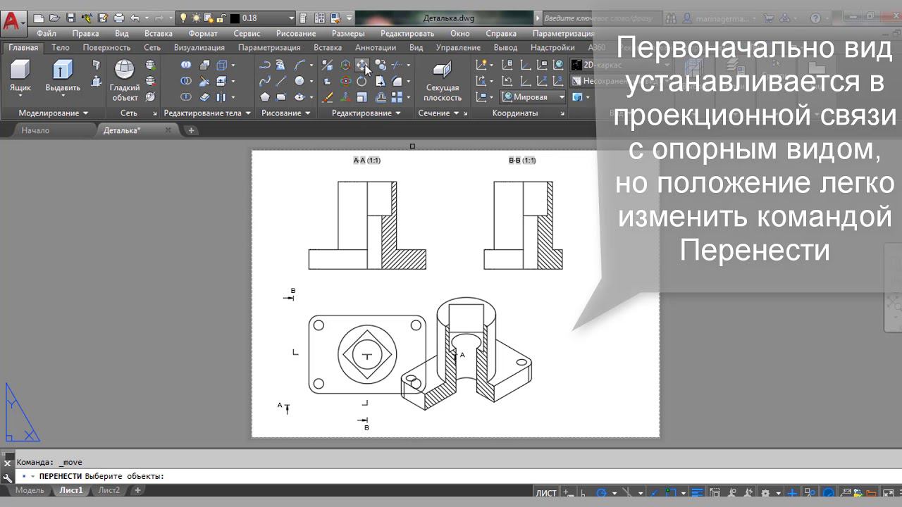 Как построить виды, разрезы, изометрию детали в AutoCAD 2018: AutoCAD 3D #5