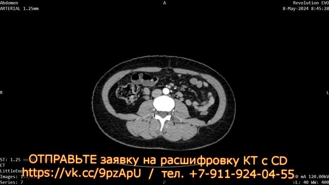 ✏️ Для исключения перегиба желчного пузыря, ПУПОЧНОЙ ГРЫЖИ и ЛИМФАДЕНОПАТИИ направьте нам заявку https://vk.cc/9pzApU для расшифровки КТ органов брюшной полости за 1500 руб. через 3-6 ч. (контактируйте через Telegram https://t.me/olegstarshinov , +79119240455 WhatsApp, Viber) с получением PDF заключения КТ на e-mail. 📀 Для пересылки DICOM с CD используйте ВИДЕОИНСТРУКЦИИ https://vk.cc/axagzB , в т.ч. при лимфаденопатии брюшной полости. 🚺 От ПАЦИЕНТКИ: "С июля 2023г сильные боли слева под ребром и около пупка, переходит на поясницу. Тошнота, рвота. Слабость. Запор чередуется с жидким стулом." 👨👩👧👦 Изучите ОТЗЫВЫ пациентов на второе мнение КТ https://kt2mnenie.ru/otzyvy/ , в т.ч. при пупочной грыже (её признаках). ▶️ Консультативное ЗАКЛЮЧЕНИЕ по представленным КТ-томограммам пациентки 31 года 📆 Дата исследования 08.05.2024г. в динамике с КТ от 15.11.2023г. 🔄 Область исследования: органы брюшной полости и забрюшинного пространства 📹 ВИДЕО С РАСШИФРОВКОЙ КТ брюшной полости (файлов DICOM) (как на нашем YouTube канале https://www.youtube.com/channel/UC04CKXaKYRMaXZzg50NvqQg ) за 500 руб. закажите для визуализации КТ заключения с доставкой через 7-10 ч. после оплаты, в т.ч. при пупочной грыже с симптомами. При анализе результатов использованы построения в аксиальной, сагиттальной и фронтальной плоскостях. В легких, на уровне сканирования, очаговые и инфильтративные изменения не выявлены. Желудок обычных размеров, правильно расположен. Печень ККРПД 146 мм, ККРЛД 69 мм (ранее 148 и 70 мм, контуры четкие, ровные, нативная плотность +50+60HU. Диаметр портальной вены 12 мм. Внутрипеченочные желчные протоки не расширены. Желчный пузырь - обычных размеров, в шейке и дне перегиб (ранее только в шейке). Рентгенконтрастные конкременты не определяются. Холедох до 5 мм. Поджелудочная железа обычных размеров: 26-18-23 мм (ранее 26-19-20 мм), с четкими контурами, паренхима однородна, плотность +34+53 HU. Вирсунгов проток не расширен. Парапанкреатическая клетчатка не изменена Селезенка не увеличена, размером 104х43 мм (ранее 112х43 мм), с четкими, ровными контурами, без Rg-контрастных очагов. Капсула прослеживается на всем протяжении. В области ворот – дополнительная долька размером 15х10 мм. Надпочечники не увеличены, обычной структуры, Y-образной формы. Правая и левая почка нормальных размеров, паренхима однородна, чашечно-лоханочная система не расширена. Рентгеноконтрастные конкременты не определяются. Сосудистая «ножка» почки структурна, паранефральная клетчатка интактна. Патологические образования в паренхиме и синусах не определяются. Сохраняются ранее описанные многочисленные мезентериальные лимфоузлы размером по короткой оси до 6-8 мм (ранее до 6-7 мм). Свободная жидкость в брюшной полости не выявлена. Диаметр аорты и нижней полой вены в пределах возрастной нормы. Свежие костно-травматические и костно-деструктивные изменения не выявле?