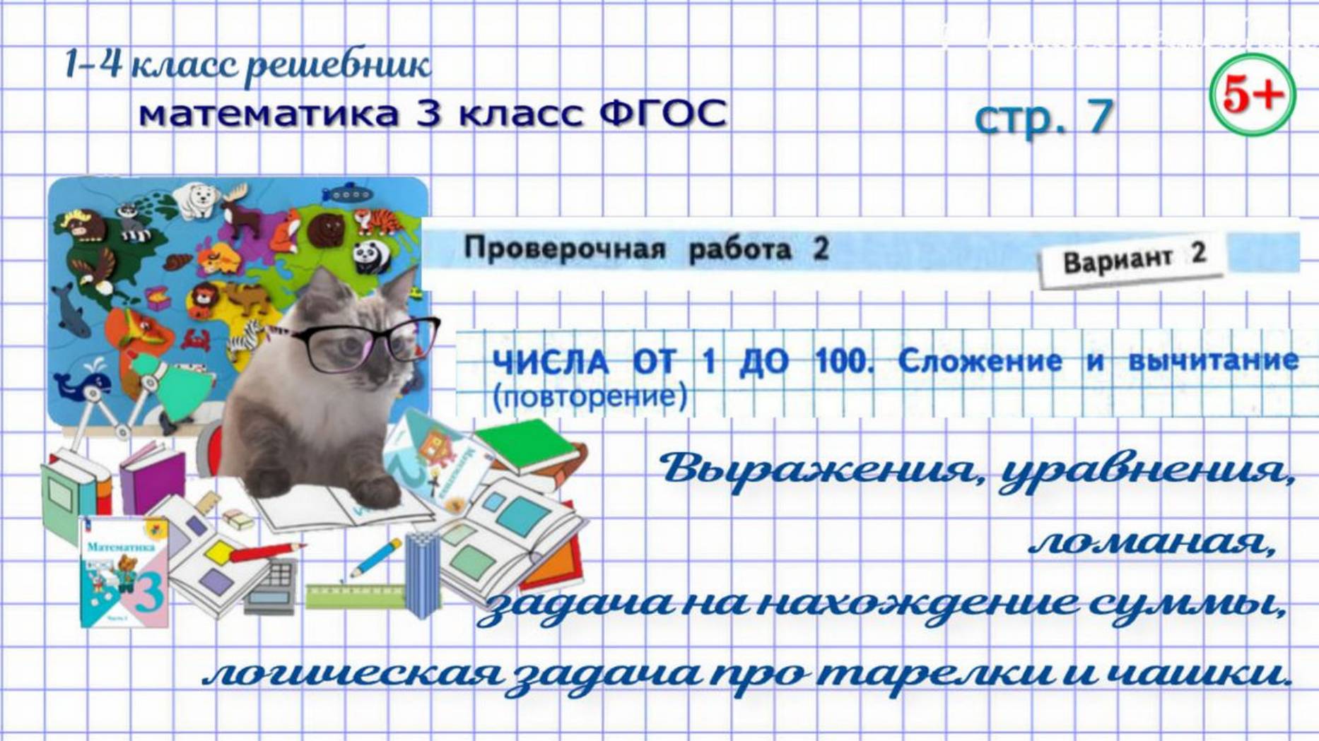 Тема. Числа от 1 до 100. Сложение и вычитание (повторение). Устное и письменное сложение и вычитание. Реши уравнения. Сравни выражения. Начерти ломаную, найди её длину. Логическая задача про тарелки и чашки. Составная задача на нахождение суммы. Математика 3 класс проверочные работы Волкова ФГОС 2023 г. 00:29 – задание 1. Сравни выражения 04:19 – задание 2. Составная задача на нахождение суммы 08:39– задание 3. Реши уравнения 12:01 – задание 4. Начерти ломаную, найди её длину 14:22 – задание 5. Логическая задача про тарелки и чашки Если нашли ошибку, напишите, пожалуйста, в комментариях. #обучениематематике#математика3классстр7проверочнаяработа#проверочнаяработа2вариант1#повторениечислаот1до100#сложениеивычитаниевпределах100#решиуравнения#сравнивыражения#логическаязадачапротпрелкиичашки#начертиломануюнайдидлинуломаной#математика3классФГОС#математика3класспроверочныеработыВолкова2023#длядетей#решебникматематика3класс#гдзматематика3класс#начальныеклассы#1-4классрешебник+