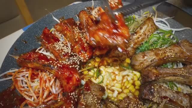 Корейская УЛИЧНАЯ Еда - Барбекю на ДУБОВОМ Угле, Лапша Калькуксу с МОЛЛЮСКАМИ, Рис с УГРЕМ-ГРИЛЬ.