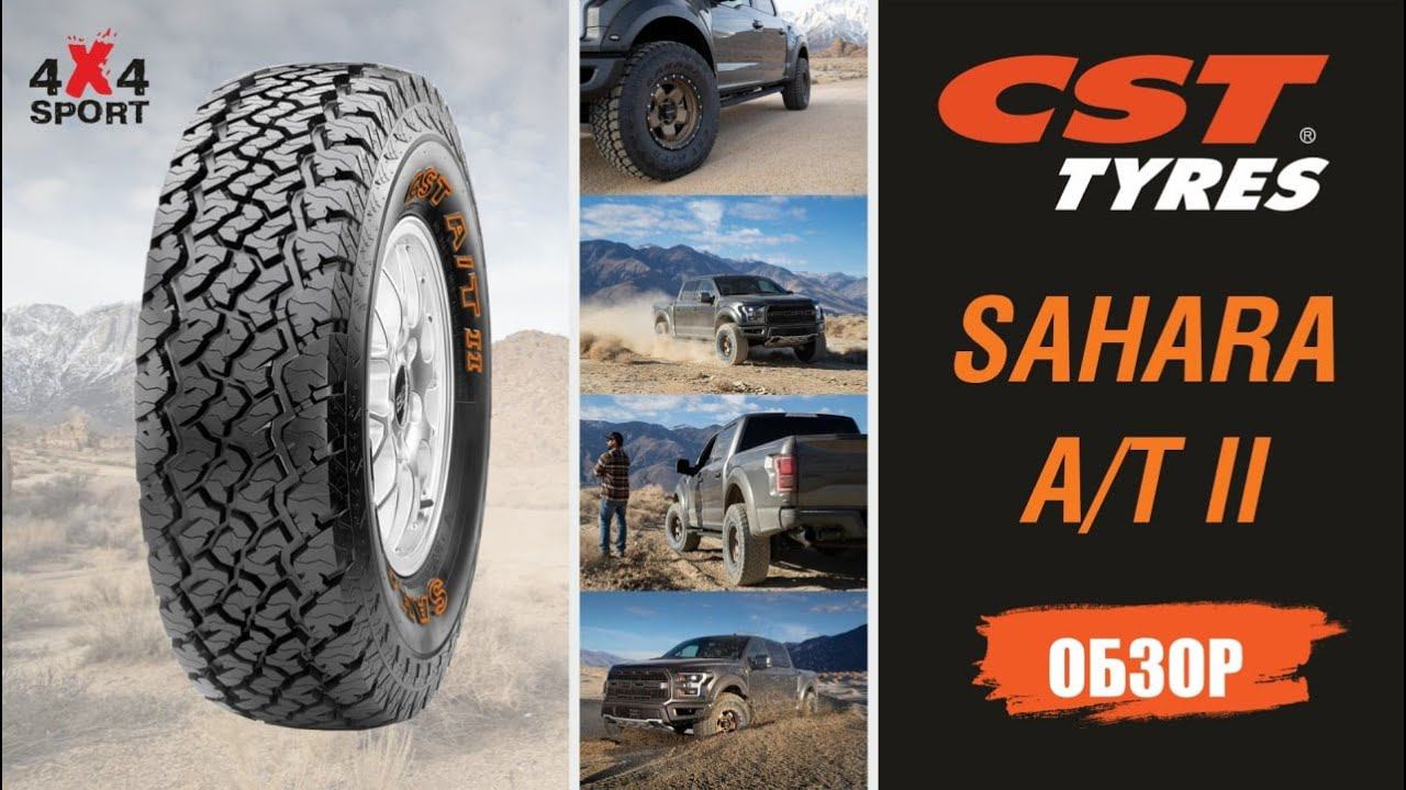 Выбрать CST Sahara AT2 - https://www.4x4sport.ru/catalogue.html?gr=1&partners=partners119 Обзор новых шин CST Sahara AT2 от эксперта 4x4Sport Превосходные внедорожные характеристики Увеличенная грузоподъемность и прочность шины Долговечность и износостойкость Стильный дизайн SAHARA AT2 обладает отличными внедорожными свойствами, которые могут приятно удивить даже не серьезном бездорожье: -Армированная плечевая зона шины для стабильного сцепления с поверхностью и устойчивости к проколам -3-х мерный зигзагообразный рисунок протектора обеспечивает отличные внедорожные характеристики -Плотно заполненный протектор с широкими канавками обеспечивает исключительную устойчивость к аквапланированию и долговечность эксплуатации -Увеличенное расстояние между блоками в плечевой зоне обеспечивает превосходное сцепление с дорогой в условиях мокрой грязи -Зазубренная боковина вдоль плечевой зоны обеспечивает улучшенные характеристики на бездорожье и дополнительную защиту от проколов -Стильная оранжевая контурная надпись на боковине шины (с другой стороны боковины - надпись черными буквами) SAHARA AT2 - это достаточно злая и стильная АТ резина, которая будет служить вам долго и при необходимости вывозить даже из самых скверных грязей. Особенно подходит для тех у кого больших пробеги по шоссе, но при этом съезжает с асфальта. https://www.4x4sport.ru/catalogue.html?gr=1&partners=partners119 https://www.csttires4x4.ru/