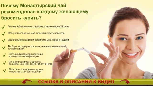 Как убрать последствия курения 👉👉👉 https://kahgo.top/2PJHTAz ❕ МОНАСТЫРСКИЙ ЧАЙ ОТ КУРЕНИЯ! БРОСИТЬ КУРИТЬ ЛЕГКО! ⏩⏩⏩ https://kahgo.top/2PJHTAz Монастырский чай – натуральное вещество, помогающее всего-навсего за три недели всецело освободиться от никотиновой зависимости - Без никотиновых пластырей - Без никотиновых жвачек - Без лекарств и БАДов - Без книг и кодирования Каким образом Монастырский чай позволяет бросать курить сигареты? По статистике, только 3-4% заинтересованных бросить курить сигареты, наконец спасаются от привычки. Курение — это одна из мощнейших зависимостей во всем мире, сопоставимая с зависимостью от наркотиков. Устройство человеческого организма такое, что лишь только единицы смогут бросить курить. Человечий мозг не узнаёт курение как смертельную привычку и настоятельно просит новую и новую дозу никотина. Стопроцентное большинство бросающих курить сигареты сами встречаются с множеством трудностей: - Набирают излишний вес в конце бросания - Ощущают беспокойность, многократное желание бросить курить - Испытывают страдания от хандры, навязчивых мыслей и паники - 90% бросивших курить начинают вновь. Для решения проблем с этими бедами был собран узкоспециальный состав Монастырского чая, уготованный лично для курильщиков. Как действует Монастырский чай? Монастырский чай — это превосходное средство, помогающее справиться с предпосылкой охоты курить. В следствии чего? - Чай выводит из организма человека 99,99% никотина на протяжении 3х недель. Привычка уходит на вполне физическом уровне, организм человека очень быстро забывает о никотине. - Чай выводит из клеток токсины, делая лучше самочувствие. Что делать если не можешь бросить курить. Вы больше не решите возвращаться к одышке, противному запаху изо рта, изможденности. Почему стоит бросить курить мужчине. - Чай укрепляет и успокаивает психику. Как бросить курить во время беременности. Вы позабудете о стрессе, паническом хотении скурить сигаретку и устойчивой нервности. Зависимость табакокурения. - Чай успокаивает чрезмерный голод. Заговор от курения читать. Вы не будете желать съесть излишнего, потому, что Ваш организм останется в спокойном и расслабленном состоянии. Что помогает бросить курить 100. Какие конкретно перемены сотворятся в Вашем организме через три недели? - Вы на все сто процентов освободите Ваш организм от смол, шлаков и никотина, скопившихся во внутренних органах и костном мозге. Какое средство лучше от курения отзывы. - Ваши лёгкие сумеют преобразовывать на 80% больше воздуха, по причине этого возрастёт работоспособность. Как перестать курить за 1 день. - Вы целиком и полностью освободитесь от нервности, устойчивого стремления курнуть и отвлечься. Сколько дней тянет курить когда бросаешь. - Вы будете выглядеть лучше, п