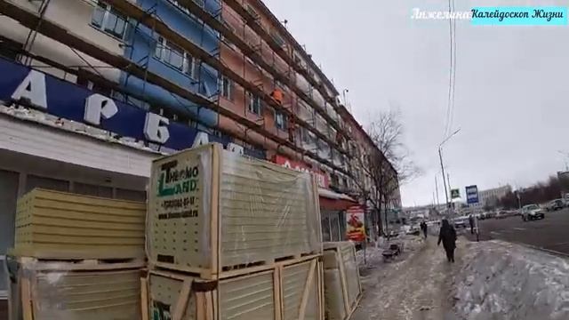 Прогулки по Магадану в марте 2022. Ремонт фасадов домов на 31 квартале и дома меркурия на кольце