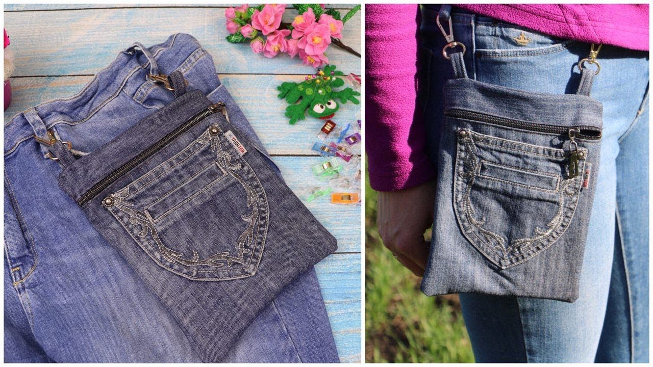 Сумка на пояс (на шлёвки) из джинсов / How to Make Fanny Pack