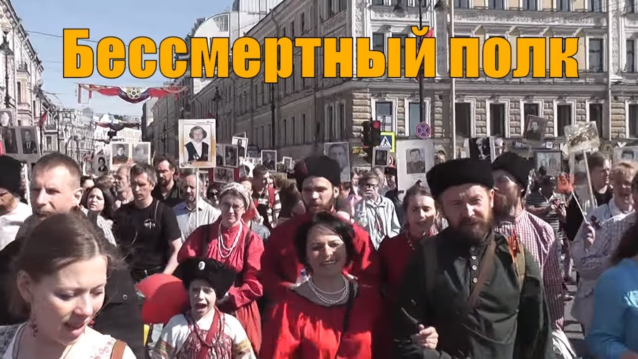 Поем песню "Катюша" на бессмертном полку в Санкт-Перербурге, 9 мая 2016 года.