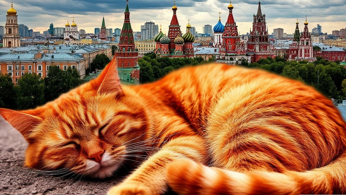 Классное видео о рыжем коте-285 выпуск: Путешествие через сны: рыжий кот и деревни мира в двойной экспозиции.Спящий рыжий кот и деревни разных стран.