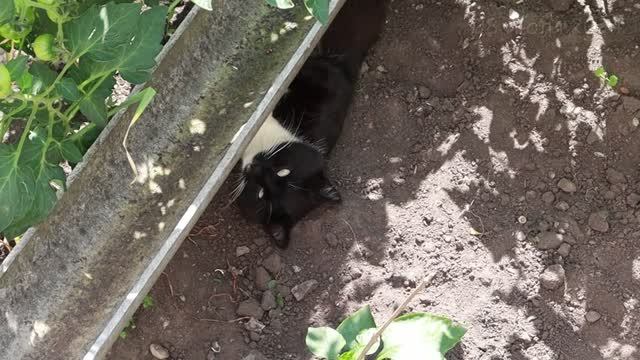 Уличные коты Косой и Юноша прячутся в тенёчке от жары.
