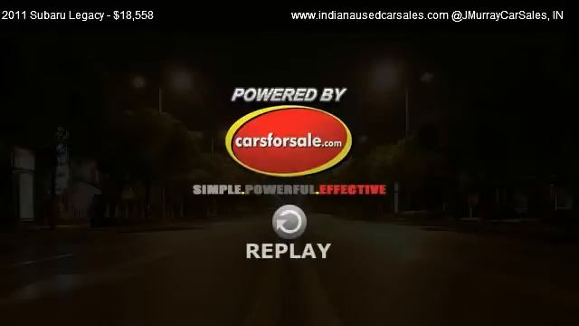 www.indianausedcarsales.com @JMurrayCarSales 821 SAGAMORE PARKWAY SOUTH in LAFAYETTE, IN 47905 Come test dirve this 2011 Subaru Legacy 2.5i Sedan 4D for sale in LAFAYETTE, IN. http://www.indianausedcarsales.com If we do not have it we can get it for you. Whatever It Takes BUY SUBARU and KEEP LAFAYETTE DRIVING and INDIANA THRIVING!!! Hill Holder,Traction Control,Vchl Dynamic Control,ABS (4-Wheel),Keyless Entry,Air Conditioning,Power Windows,Power Door Locks,Cruise Control,Power Steering,Tilt Wheel,AM/FM Stereo,MP3 (Single Disc),Dual Air Bags,Side Air Bags,Head Curtain Air Bags,Daytime Running Lights,Variable intermittent windshield wipers,Body color door handles,P205/60R16 all-season tires,Black manual-folding pwr mirrors,Auto-on 4-beam headlights,16 steel wheels w/cover,Aerodynamic body color body side ground effects,Pwr door locks,Cruise control,Rear window defroster,Air conditioning,Cloth upholstery,Air filtration system,Security system,Tilt/telescopic steering column,Illuminated ignition switch ring,Anti-theft engine immobilizer,Instrument panel storage bin,Dual illuminated visor vanity mirrors w/lids,Overhead console w/sunglasses holder,3-spoke steering wheel,Front active headrests,Pwr windows w/driver-side one-touch down illuminated switches,(2) Trunk area grocery bag hooks,Steering wheel mounted paddle shifters,Integrated ignition key w/remote keyless entry system,(2) 12V aux pwr outlets in center console,Off-black carpeting,Multi-function display -inc: clock fuel economy outside temp,Lighting-inc: front door courtesy dual front map dome,Front bucket seats w/6-way manual driver seat adjustment,4-wheel disc brakes,Pwr-assisted steering,2.5L SOHC SMPI 16-valve 4-cyl boxer engine,Electronic throttle control (ETC),Symmetrical all-wheel drive,McPherson strut front/double-wishbone rear suspension,Single chrome exhaust tip,Passenger airbag on/off switch,Emergency trunk release,3-point rear seatbelts on all seating positions,Brake Assist,Driver & front passenger dual-stage airbags (SRS),Daytime running lights (DRL),Safety brake pedal system,Tire Pressure Monitoring System (TPMS),LATCH child safety seat anchorage system,Rear child safety locks,Vehicle dynamics control (VDC),Front & rear side curtain airbags (SRS),3-point height-adjustable front seatbelts w/pretensioners force limiters,Driver & front passenger side impact airbags (SRS) Provided by Carsforsale.com http://video.carsforsale.com/vehiclevideo.aspx?vid=161462606