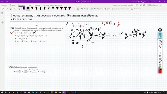 1. Шексіз кемімелі геометриялық прогрессияға берілген 2 есеп. 9-сынып алгебрасы