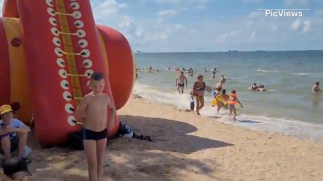 Голубицкая Азовское море сегодня 7 августа 2024. Обстановка на пляже море и погода сейчас
