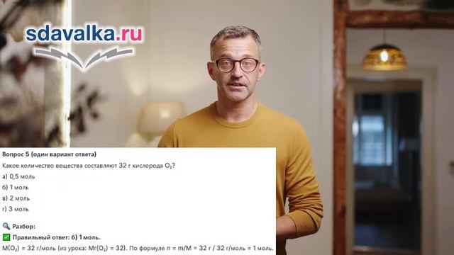 Понятие о количестве вещества. Моль как единица количества вещества. Постоянная Авогадро. Молярная масса. Связь между массой, количеством вещества и молярной массой (m = n * M). Подготовка и обучение школьников с помощью ИИ: https://sdavalka.ru/. Как работать? - Зарегистрируйтесь. - Найдите нужный предмет и класс. - Изучите материалы по урокам: текст, понятный ученикам, сжатый видеоурок с ИИ. - Пройдите тренировочный тест (можно проходить бесконечно, для усвоения материала). - Уверены, сдавайте экзаменационный тест! - И так по каждой теме. - В конце итоговый тест. - Сдадите все - сдадите любой экзамен! Системы дистанционного образования, контент: https://ecre.ru/ Подготовка для ВУЗов и СУЗов: https://mexam.ru/