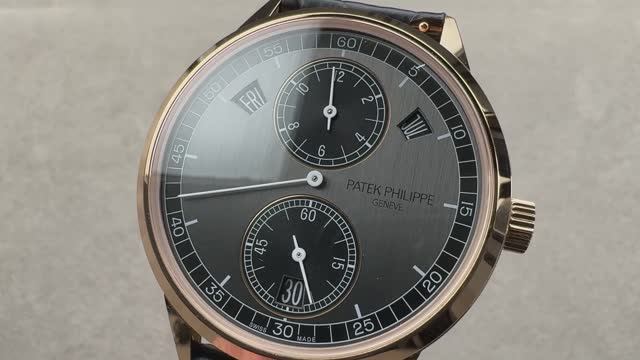 *перевести видео можно в Яндекс браузере Дисплей Patek Philippe с годовым календарем в виде регулятора (5235/50R-001) выполнен в корпусе из розового золота диаметром 40,5 мм с черным циферблатом и расположением регулятора. Эти автоматические часы отображают часы, минуты, секунды, день недели, дату и месяц с помощью годового календаря. Функция календаря автоматически настраивается на месяцы с 30 или 31 днем. Они оснащены мануфактурным механизмом Patek Philippe калибра 31-260 REG QA и поставляются на черном ремешке из кожи аллигатора с пряжкой tang из розового золота 18 карат.. Толщина этих часов Patek Philippe также составляет 10,6 мм, а расстояние от выступа до выступа составляет 47,8 мм. Для получения более подробной информации ознакомьтесь с полным обзором дисплея Patek Philippe в стиле регулятора годового календаря.