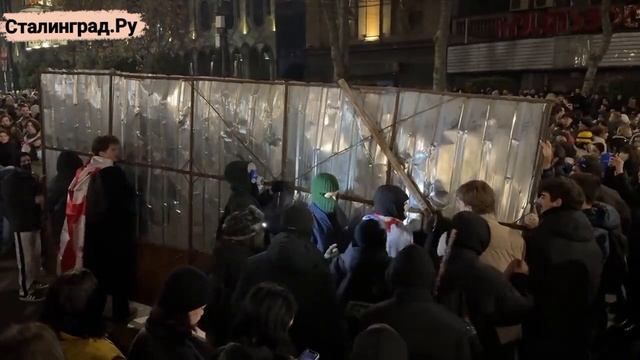 Демонстранты в Тбилиси при этом уже готовятся к стычкам и возводят баррикады.
