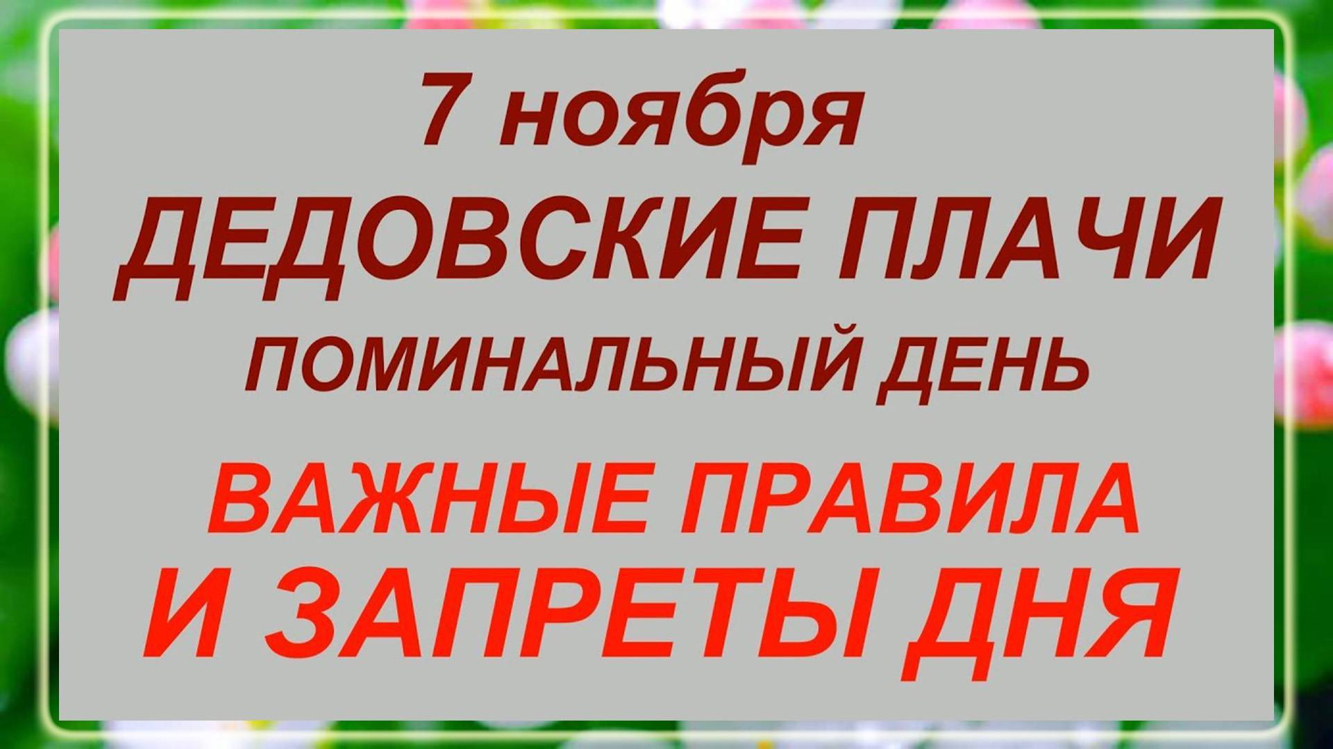 7 ноября - день Дедовские Плачи. Что делать нельзя?