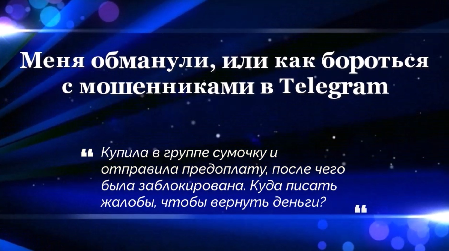 Купила в группе сумочку и отправила предоплату, после чего была заблокирована. Куда писать жалобы, чтобы вернуть деньги? #Мошенники #Безопасность #Telegram #Телеграм Источник: https://t.me/Addinfo