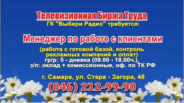 Вакансии и телефоны прямых работодателей в специализированной программе по трудоустройству "Телевизионная Биржа Труда" - г.САМАРА, г.ТОЛЬЯТТИ т/к РЕН-ТВ