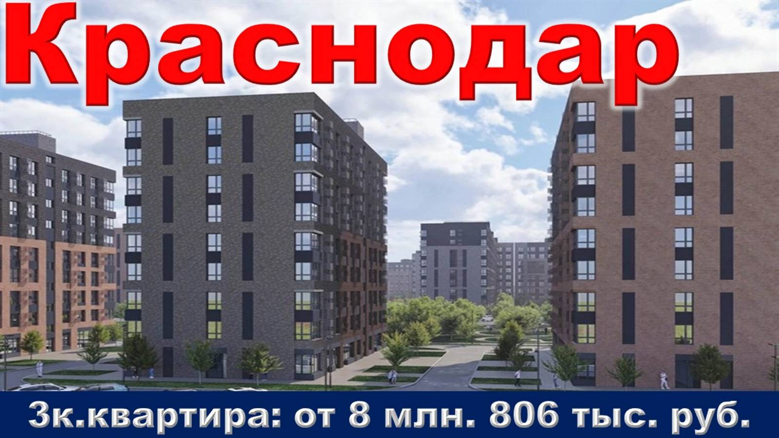 Подпишитесь на канал. Благодарю !!! https://www.youtube.com/@nedvigimoct/videos - я на Ютубе https://boosty.to/karkavin - я на Бусте https://dzen.ru/nedvigimoct?tab=longs&utm_referrer=dzen.ru - я на Дзене https://rutube.ru/channel/27083000/videos/ - я на Рутубе https://vk.com/video/@soyuzrussia - я в ВК Специалист по недвижимости Александр Каркавин. Предлагает приобрести: 3к. квартиру в Краснодаре. им. генерала Брусилова ул. Номер тел.: 89513876777 (ПИШИТЕ или ЗВОНИТЕ) Цена на недвижимость точно такая же как и у застройщика. Недвижимость продаётся БЕЗ РИЭЛТОРСКОЙ КОМИССИИ !!!. 3к.квартира: от 8 млн. 806 тыс. руб. Ежемесячный платеж: 42 181 руб. при ставке 6% Площадь общая: 67,53 м2 Срок сдачи: сдан -4 кв. 2026 Срок выдачи ключей: 4 кв. 2024 - 1 кв. 2027 Договор: ДДУ Тип дома: кирпично-монолитный Тип отделки: подготовка под чистовую. Парковка: есть Потолки: 2,85 м. Преимущества ЖК: Транспортная доступность. Благоустроенная территория. Детские и спортивные площадки. Развитая инфраструктура. Описание комплекса: Девятиэтажный жилой комплекс комфорт-класса состоит из 13 домов. Монолитно-кирпичная технология строительства обеспечивает зданию высокую сейсмостойкость, хорошо сохраняет тепло зимой и прохладу летом. Панорамное остекление и отделка в стиле колор-блок придают изюминку фасаду. Высокие потолки – 2,85-3,3 метра – позволяют реализовать любой дизайн интерьера. Выбраны европейские планировки с просторными кухнями-гостиными, увеличенной площадью спален, большими ванными комнатами. Стильные холлы и места общего пользования понравятся ценителям минимализма в архитектуре и интерьере. Комплекс расположен в Прикубанском округе в очень перспективном микрорайоне – на пересечении крупных транспортных артерий города. Вокруг ЖК проходит улица Западный обход. Удобный съезд через улицы им. Генерала Корнилова или Снежную позволяет быстро выехать на магистраль. Удобнее перемещаться по городу и пригороду на личном авто. Без учета пробок путь займет: до центра Краснодара – 25-30 минут; до стадиона «Краснодар» и одноименного парка – 30 минут; до железнодорожного вокзала – 35 минут; до Пашковского аэропорта – 40-45 минут. До Черного и Азовского морей можно доехать чуть более чем за 2 часа. До Горячего ключа нужно добираться 60-70 минут. Общественный транспорт развит на высоком уровне, но пока отстает от более старых районов города. Остановка расположена буквально в 200 метрах от дома. Но на ней ходят всего 3 маршрута. В некоторые удаленные районы придется ехать с пересадками. В шаговой доступности от ЖК есть все для комфортной жизни: сетевые продуктовые гипермаркеты, например, «Магнит»; медцентры и стоматологические клиники; магазины одежды и хозтоваров; теннисный клуб; фитнес-центры; салоны красоты и парикмахерские; отели, гостиницы, небольшие дома отдыха; храм Святителя Николая Чудотворца. Если не учитывать пробки, доехать до выставочного центра «Экспоград-Юг» и мегацентра «Красная площадь» можно за 12-15 минут. Там есть все необходимое для активного и культурного отдыха. Буквально в паре минут на авто расположена «Немецкая деревня» с благоустроенными зелеными зонами. Любителям больших парков можно посоветовать поехать в Ботанический сад и парк им. 300-летия полиции России. Знаменитые достопримечательности Краснодара можно посмотреть в центре – до него быстро и удобно добираться. ЖК – полноценный «город в городе». Закрытая территория с густой растительностью – это почти что ого