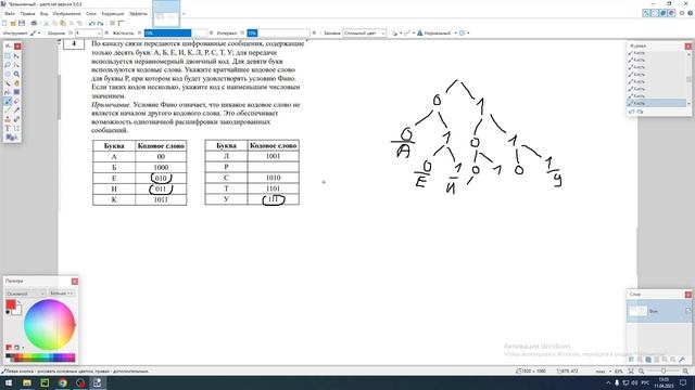 По каналу связи передаются шифрованные сообщения, содержащие только десять букв: А, Б, Е, И, К, Л, Р, С, Т, У; для передачи используется неравномерный двоичный код. Для девяти букв используются кодовые слова. Укажите кратчайшее кодовое слово для буквы Р, при котором код будет удовлетворять условию Фано. Если таких кодов несколько, укажите код с наименьшим числовым значением. материалы https://disk.yandex.ru/d/0xW8UuT8z5Gw5w