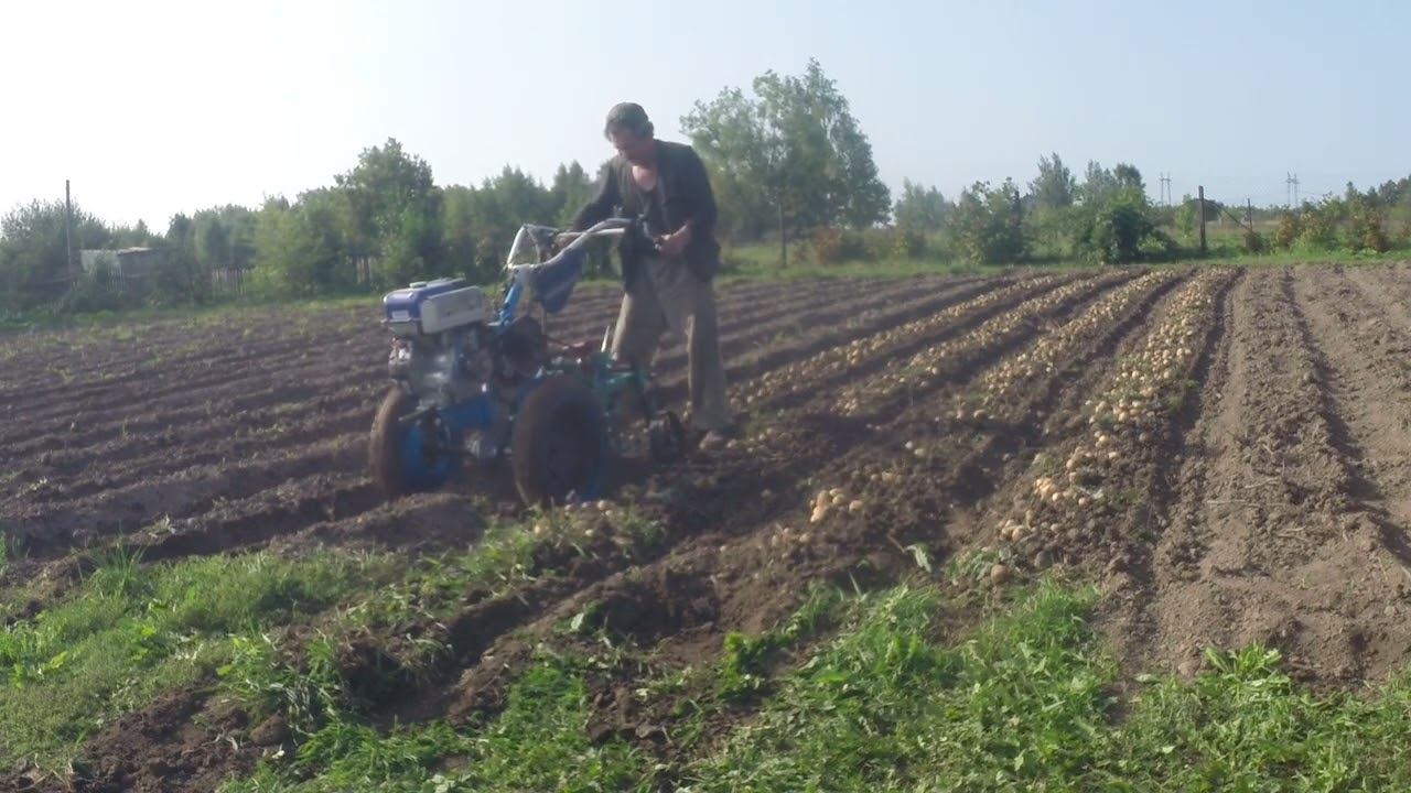 Картофелекопалка грохотная ККМ-1 мотоблочная в работе