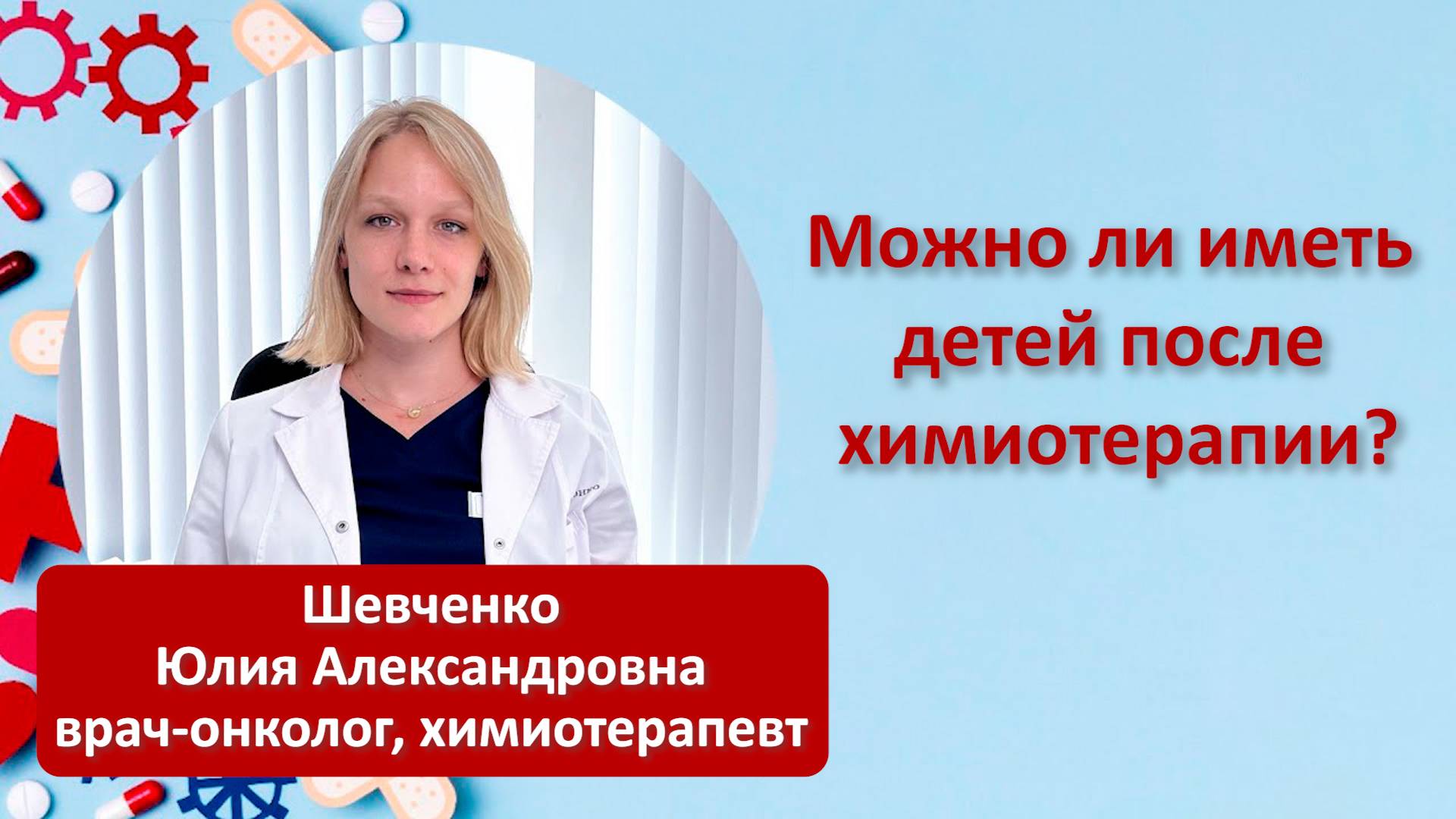 Некоторые виды лечения онкологии влияют на фертильность, но всегда есть выход. Некоторые виды лечения онкологии влияют на фертильность, но всегда есть выход. Какой? Рассказала в нашем видео врач-онколог, химиотерапевт, Шевченко Юлия Александровна.