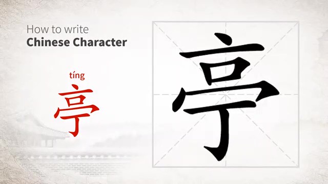 亭 (tíng) pavilion; kiosk; booth; gloriette