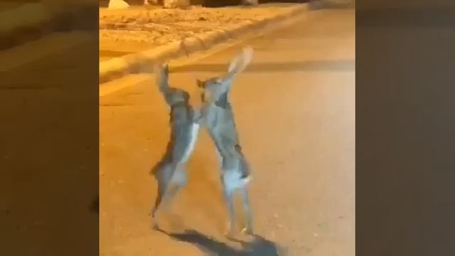 Раз на раз, на голых кулаках. Два зайца вступают в молниеносный рукопашный бой.